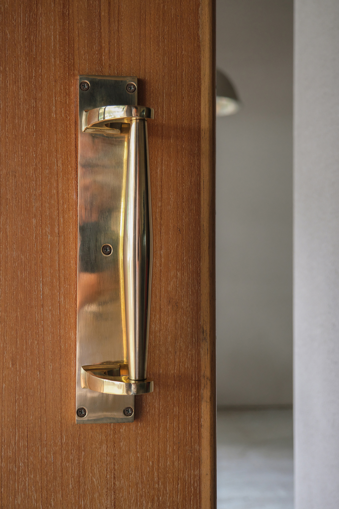 Rustic style is all about the raw and natural. A door pull without a backplate aligns perfectly with this ethos, showcasing the raw beauty of the brass.